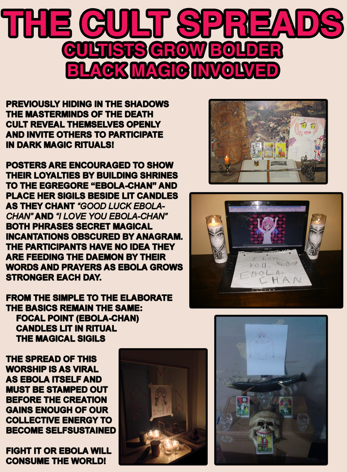 People are literally lighting candles and building shrines. To an anthropomorphic virus. In 2014. The internet was a mistake, but we're here for it.